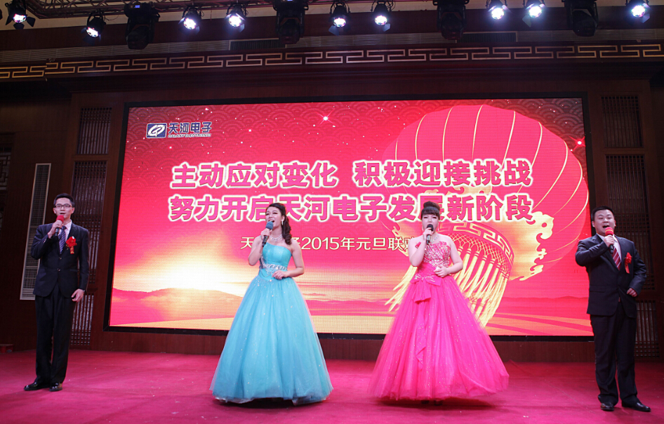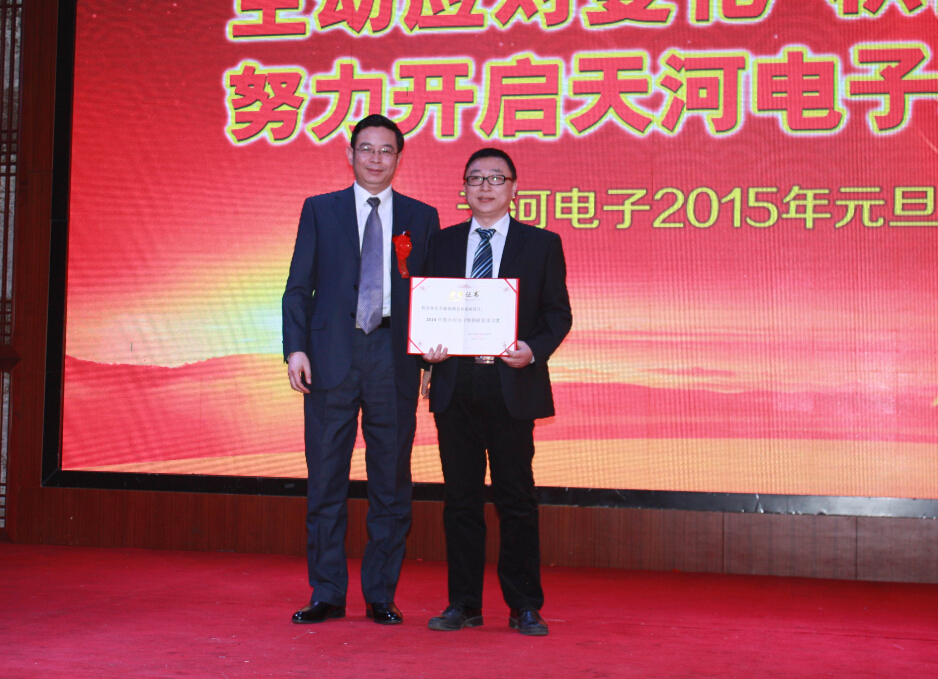 2014年12月31日下午4時整,天河電子2015年元旦晚會在星光大酒店二樓場鑫軒隆重舉行,大會表彰了2015年度在市場、研發(fā)、工程等領(lǐng)域作出突出貢獻的優(yōu)秀團隊和個人。公司總經(jīng)理苗立在會上做了重要講話,總結(jié)了2014年我們所做出的成績和不足,分析了公司目前所處的內(nèi)外形勢,并為公司2015年的工作指明了方向。